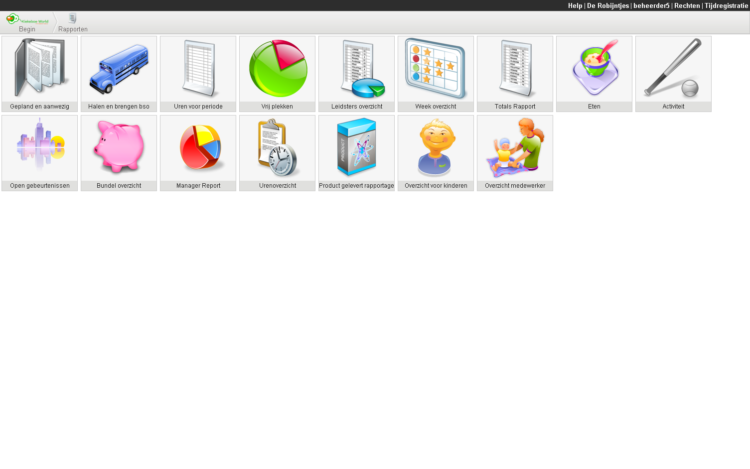 U kunt diverse rapporten bekijken en eventueel printen, echter hopen wij dat u het printen niet nodig heeft. Wij streven er naar dit in zijn geheel digitaal te kunnen doen. Het enige rapport dat gebruikelijk is uit te printen zijn de haal- en brengoverzichten voor buschauffeurs. Deze kunt u kunt vinden onder "Overzicht kinderen bus".