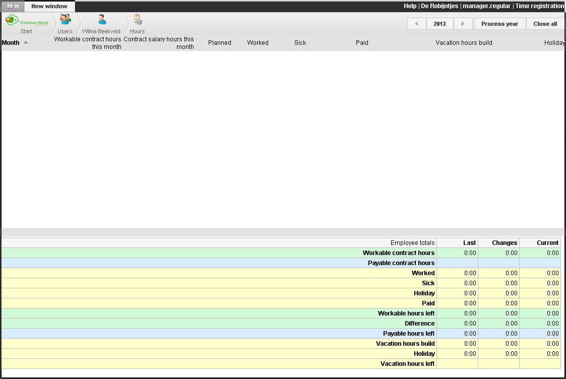 This page give the employee insight into their hours.