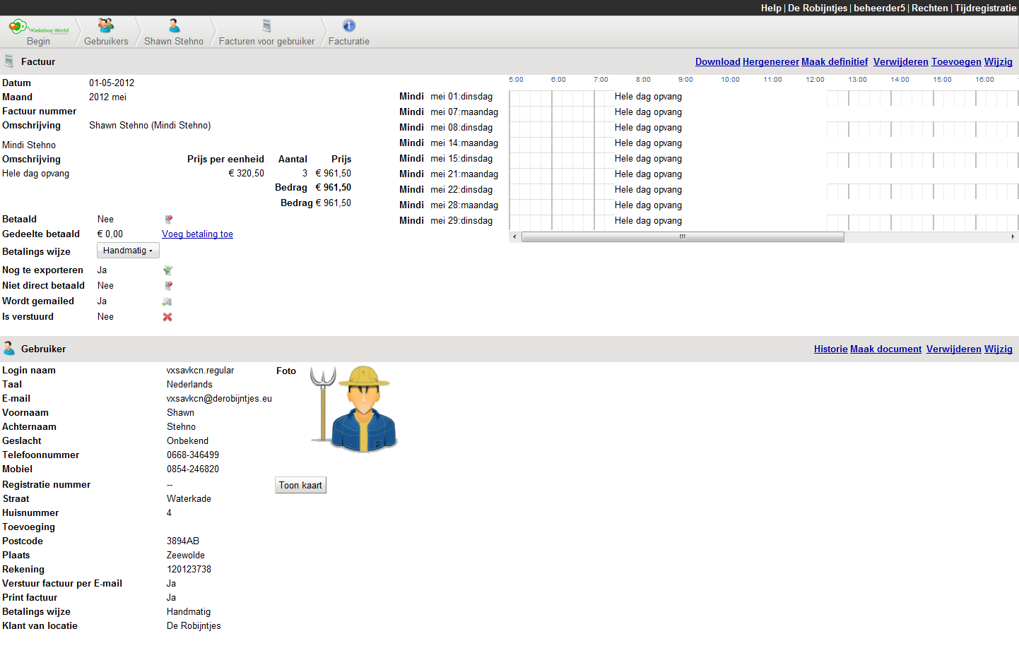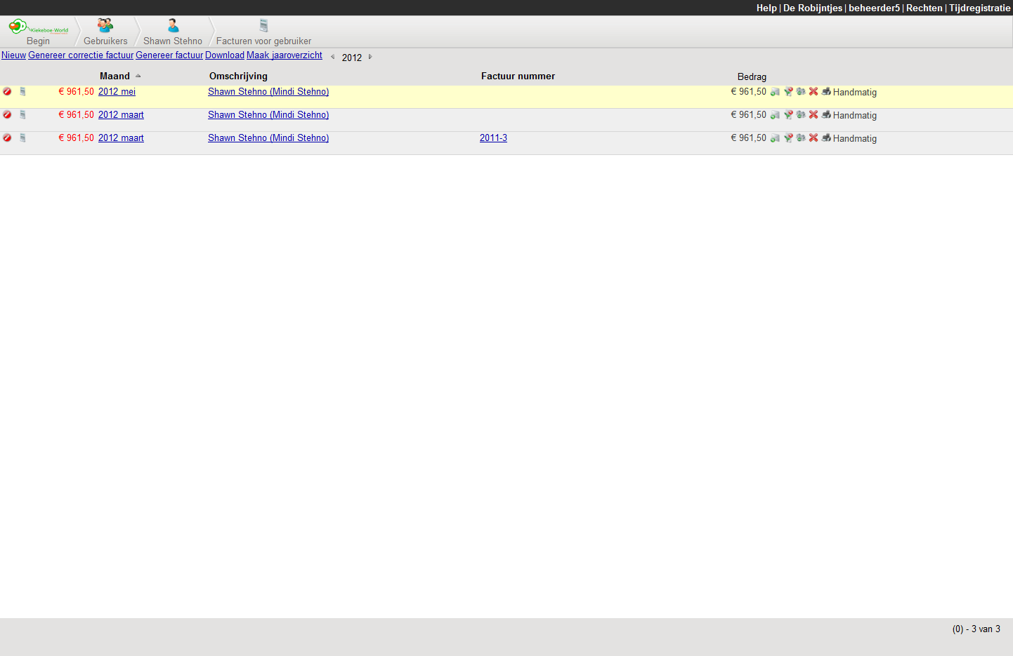 On this page a user can view his invoices and eventual download a yearoverview. The invoices are shown grouped by year.