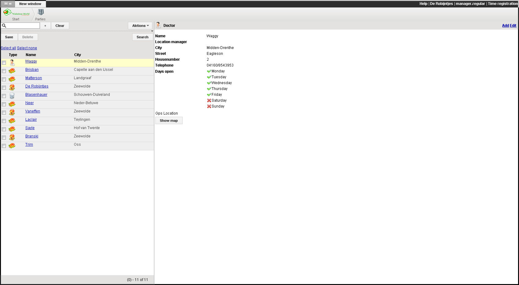 In Kiekeboe World Light you cannot add Kdv/Bso locations. This screen is intended to manage schools, docters and dentists.