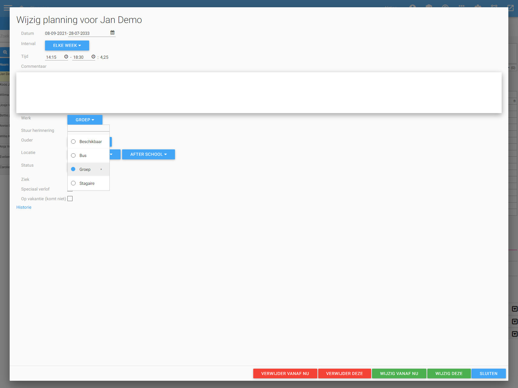 - Als deze op ja staat heeft iedereen volledige controle over de activiteit mits de persoon de planning aan mag passen.